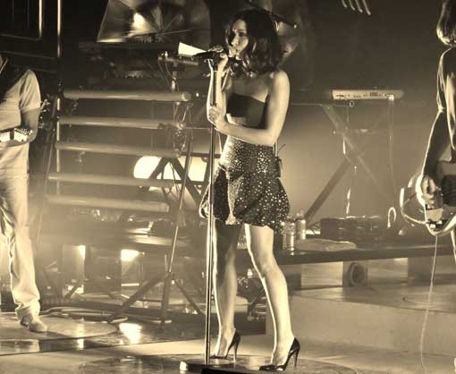 Jenifer porte une robe créée spécialement par CharlesR pour sa nouvelle tournée 2011. La chanteuse sera à Toulouse jeudi 7 Avril au Bikini.